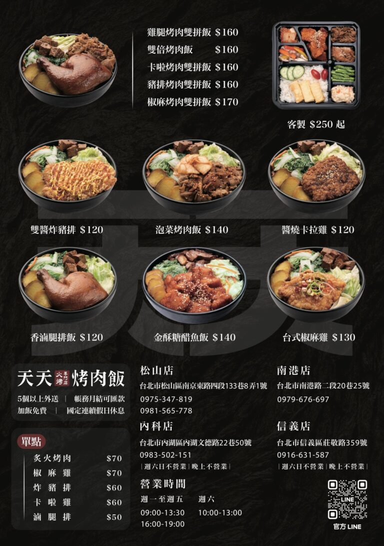 天天烤肉飯的每一份便當,都是對品質的堅持與對味道的追求。期望能讓顧客在每一次的品嚐中,都能感受到家的味道,並堅信美味能夠跨越一切界限,連結每一顆心。